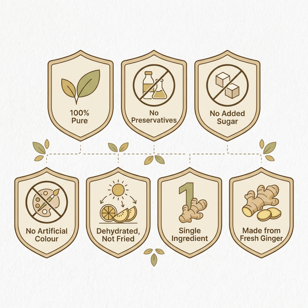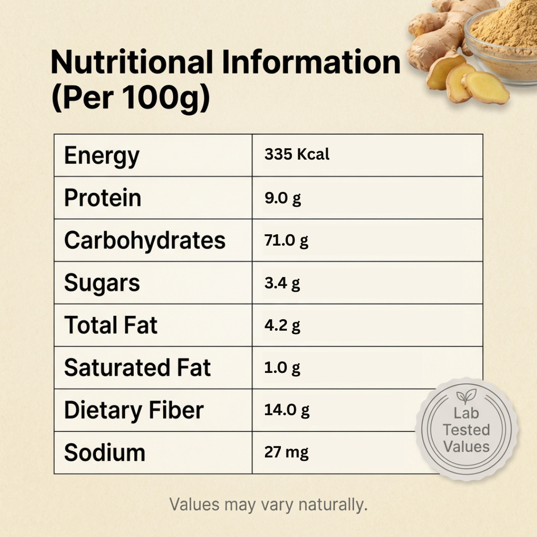 A warm, aromatic ginger powder made from carefully dehydrated fresh ginger roots. Known for its bold flavor and natural wellness benefits, this finely ground powder is perfect for daily use in drinks, cooking, and traditional remedies. Made from a single ingredient with no added sugar, colors, or preservatives.